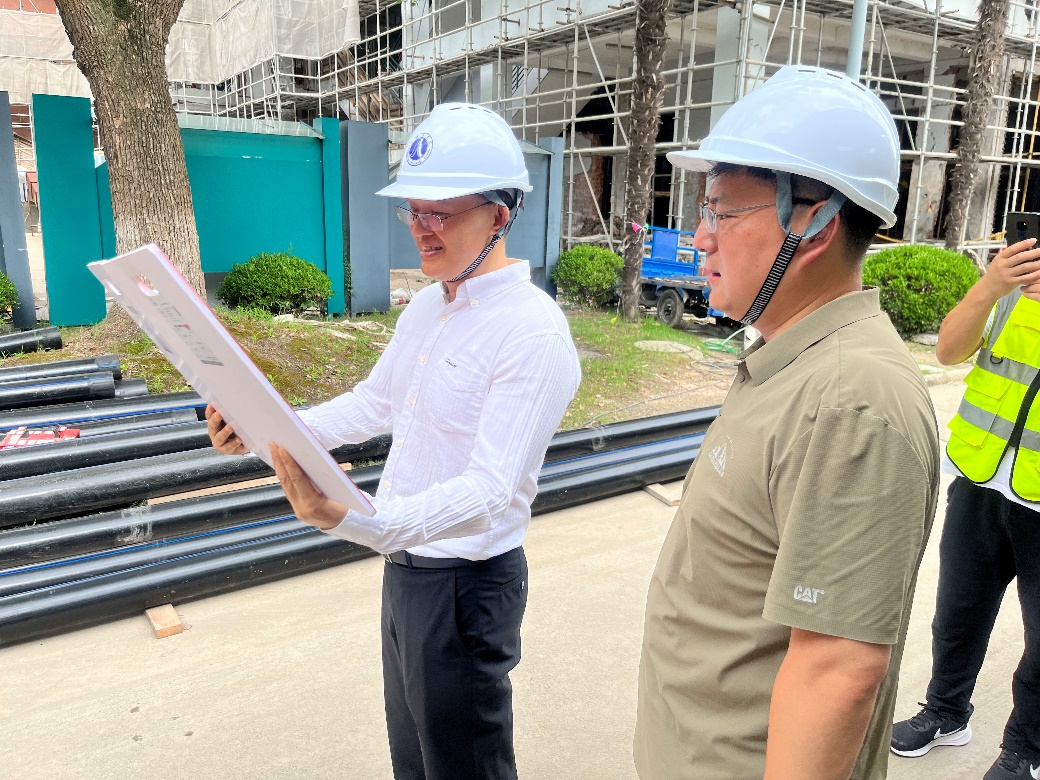 在检查过程中,张绍华着重强调,当前正处于“七下八上”防汛关键期和工程推进关键阶段,防台防汛工作容不得半点马虎,施工单位必须高度重视,要积极响应习近平总书记重要指示,全面落实防台防汛安全措施,务必保障施工人员生命安全,确保校园安全稳定。