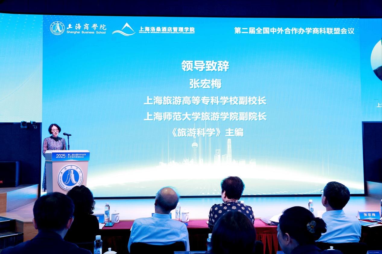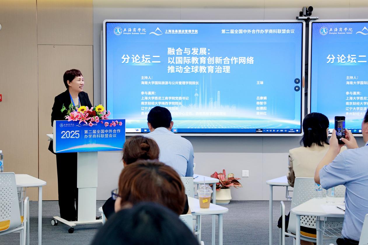 2025年9月25日至27日,第二届全国中外合作办学商科联盟会议在上海商学院成功举办。本次会议以“深化中外合作办学商科教育交流互鉴、协同创新,全面提升国际化商科人才培养质量”为核心目标,汇聚高校专家、行业领军者及企业代表,共同探讨全球经济格局调整与数字化转型背景下,商科教育国际化发展的新路径、新机遇。本次会议由上海商学院、全国中外合作办学商科联盟联合主办,上海商学院上海洛桑酒店管理学院、全国泛酒店业产教融合共同体承办,教育部旅游管理专业国家虚拟教研室、《旅游科学》、东北财经大学萨里国际学院、上海高等教育学会国际交流专委会提供支持,会议汇聚了100余名来自全国60多所中外合作办学高校、文旅企业以及政府机构的管理者、学者和学生共同参加,为中外合作办学商科领域搭建了高端对话的重要平台。会议由上海商学院上海洛桑酒店管理学院执行院长胡笑寒主持。