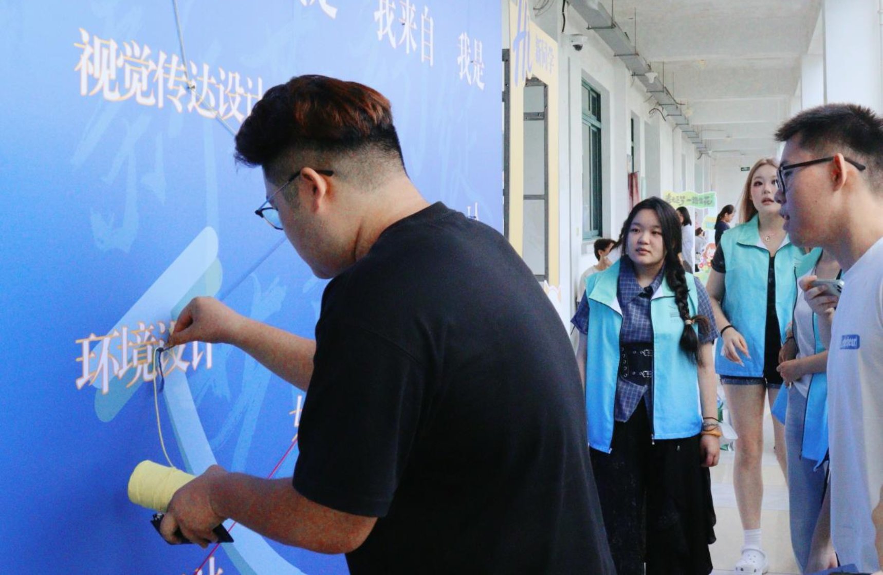 艺术设计学院以一场创意满满的迎新活动,迎来了2025级新生。学院为新生准备了寓意深远的“启航礼包”:一张“种子卡”承载学院的“种子计划”,邀请新生写下四年期许,通过亲身劳动培育成长,寓意“向下扎根,向上繁茂”;一款学生自主设计的眼罩,则传递“屏蔽喧嚣,守护灵感”的期许。报到现场的签到墙成为新生展现个性的第一站,他们通过不同的绕线方式,勾勒出或内敛“I”人或活力“E”人的独特标签,织就了一幅多元的青春群像。
