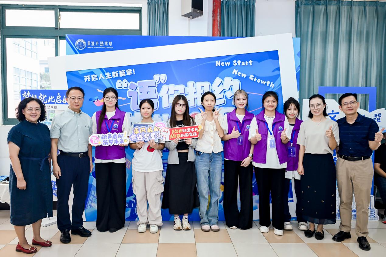 商务外语学院以“‘语’你同行,共赴‘心’程”为主题开展迎新活动。新生将红色细沙注入立体“心”形容器,象征与学院自此“心”意相通,未来将以“心”为帆、以语为桨,在上商沃土逐梦前行,收获星光。在“语通世界,拇指印心”画板签到活动中,新生留下拇指彩印,与东风-5C导弹硬核符号互动点赞,增强国防意识,响应“讲好中国故事”号召。此外,学院还组织入党申请书递交仪式,开展抗战胜利80周年大事件互动游戏,并赠送新生政治读本的外语译本,引导教育新生铭记历史、传承精神,深刻领会新时代青年的使命担当。