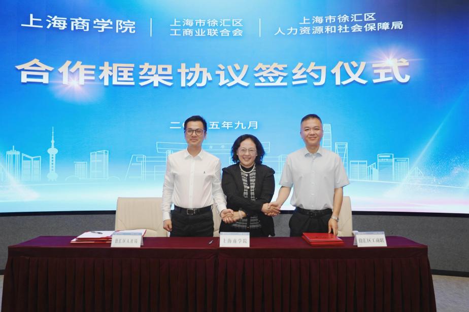 “政校企协”合力筑平台,共绘高质量发展图景——我校与徐汇区工商业联合会、徐汇区人...9月24日,上海商学院与徐汇区工商业联合会、徐汇区人力资源和社会保障局三方合作框架协议签约仪式在我校中山西路校区举行。徐汇区党委统战部副部长、区工商联党组书记张敏,徐汇区人力资源和社会保障局党组书记、局长方志杰,上海商学院党委副书记、副校长劳晓芸及徐汇区工商联企业代表、上海商学院二级学院代表出席签约仪式。签约仪式由我校党委学生工作部部长、学生处处长李爽主持。 2025-09-25