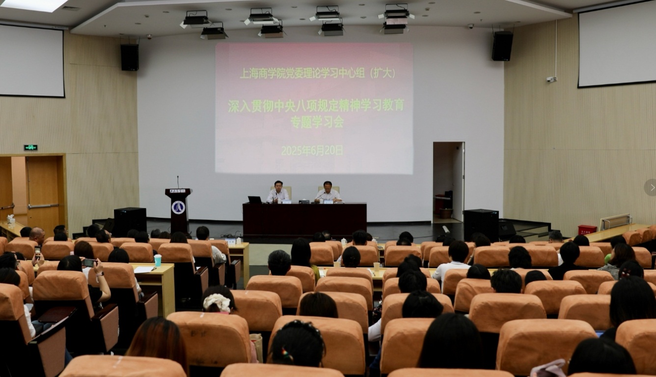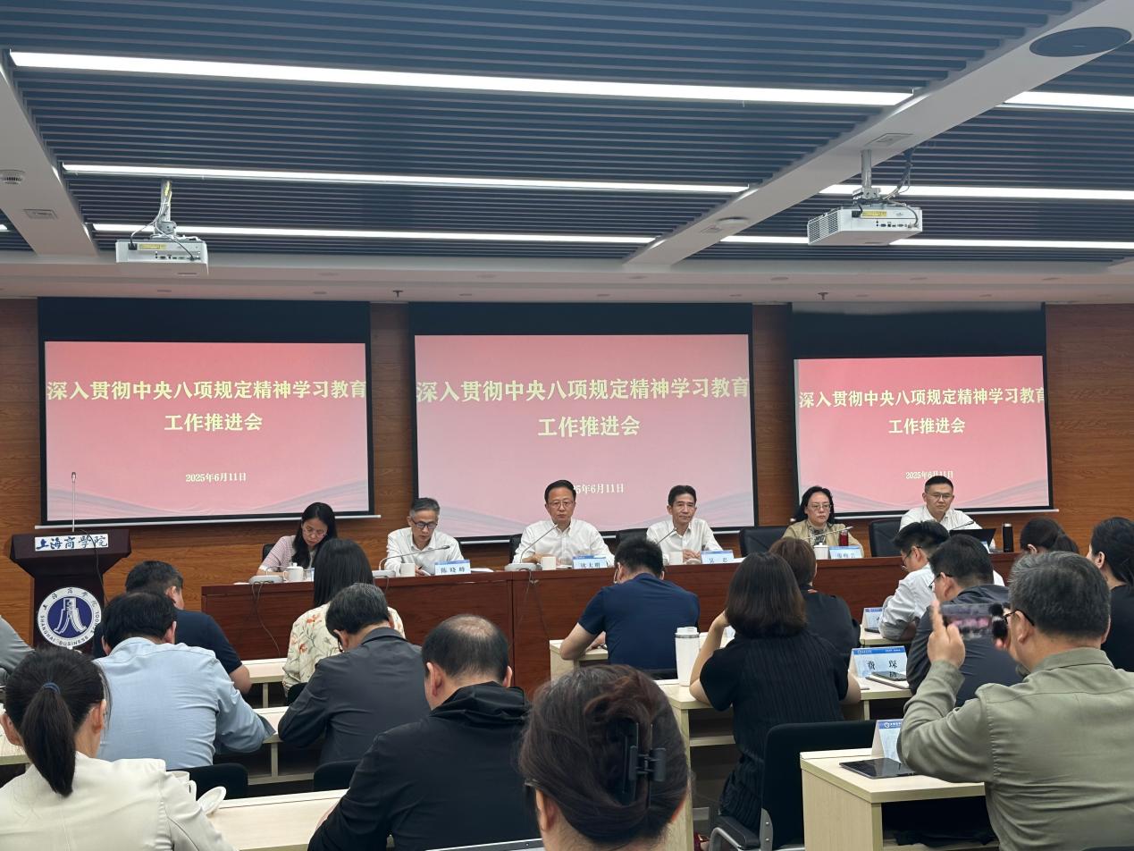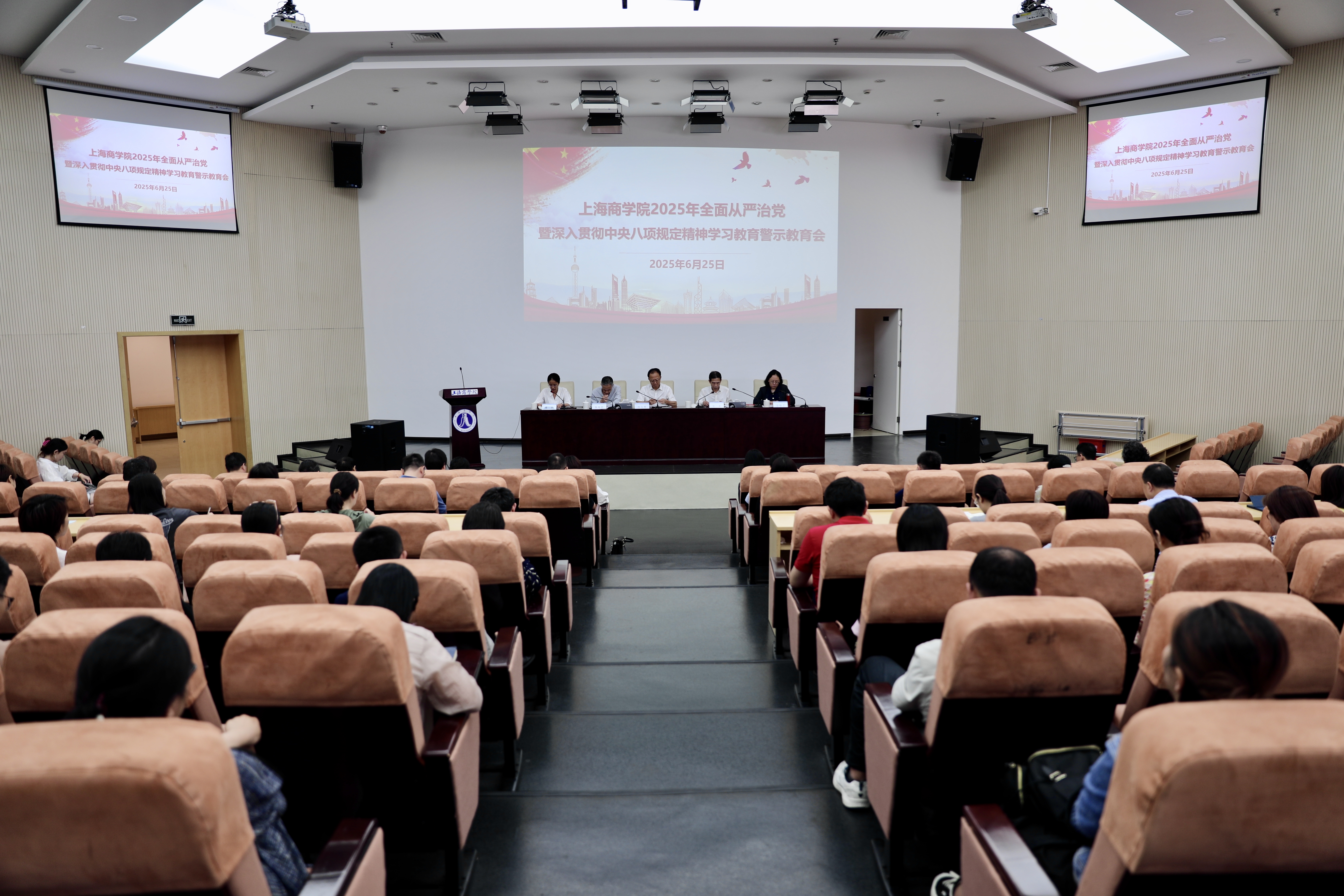 持续发力久久为功 以作风建设新成效推进学校高质量发展 ——学校召开全面从严治党暨...6月25日下午,上海商学院2025年全面从严治党暨深入贯彻中央八项规定精神学习教育警示教育会在中山西路校区召开。会议传达学习了2025年上海市委以及市教卫工作党委系统全面从严治党暨深入贯彻中央八项规定精神学习教育警示教育会精神,总结学校2024年全面从严治党工作,部署2025年重点任务。党委副书记、校长吴忠主持会议。校领导班子成员、中层干部、党风廉政建设监督员出席会议。 2025-06-25