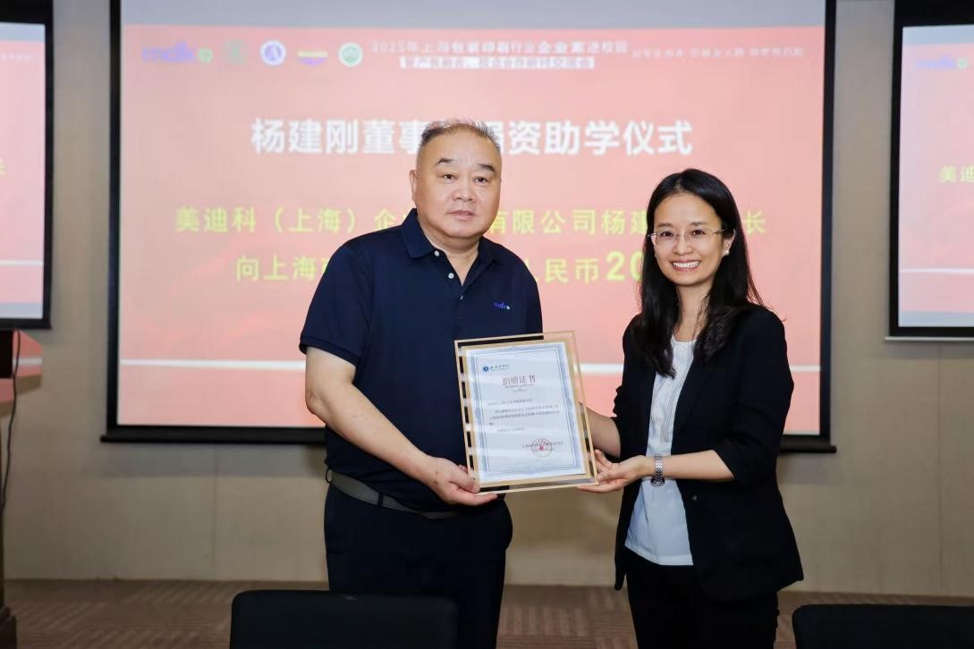 企业家捐资助力校院发展、校企合作共育海派商业设计英才 ——美迪科(上海)企业捐赠...6月16日,美迪科(上海)企业发展有限公司董事长杨建刚向上海商学院艺术设计学院捐资助学共计人民币20万元,捐赠签约仪式在上海商学院奉浦校区综合楼422会议室举行。 2025-06-17